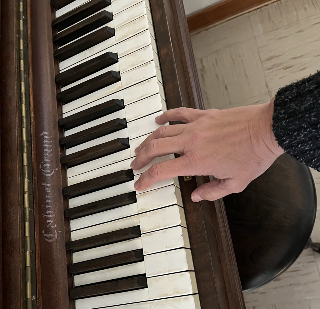 I picture my fingers that can’t play more than a few minutes. And only simple songs. No reaching. No pressure. And how frustrating that can be when trying to demonstrate.